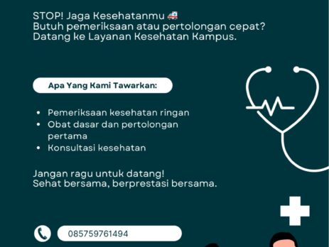 Layanan ini bertujuan untuk memberikan penanganan cepat, tepat, dan preventif terhadap masalah kesehatan yang muncul di lingkungan kampus. Setiap anggota civitas akademika dapat memanfaatkan fasilitas ini secara langsung tanpa biaya tambahan.